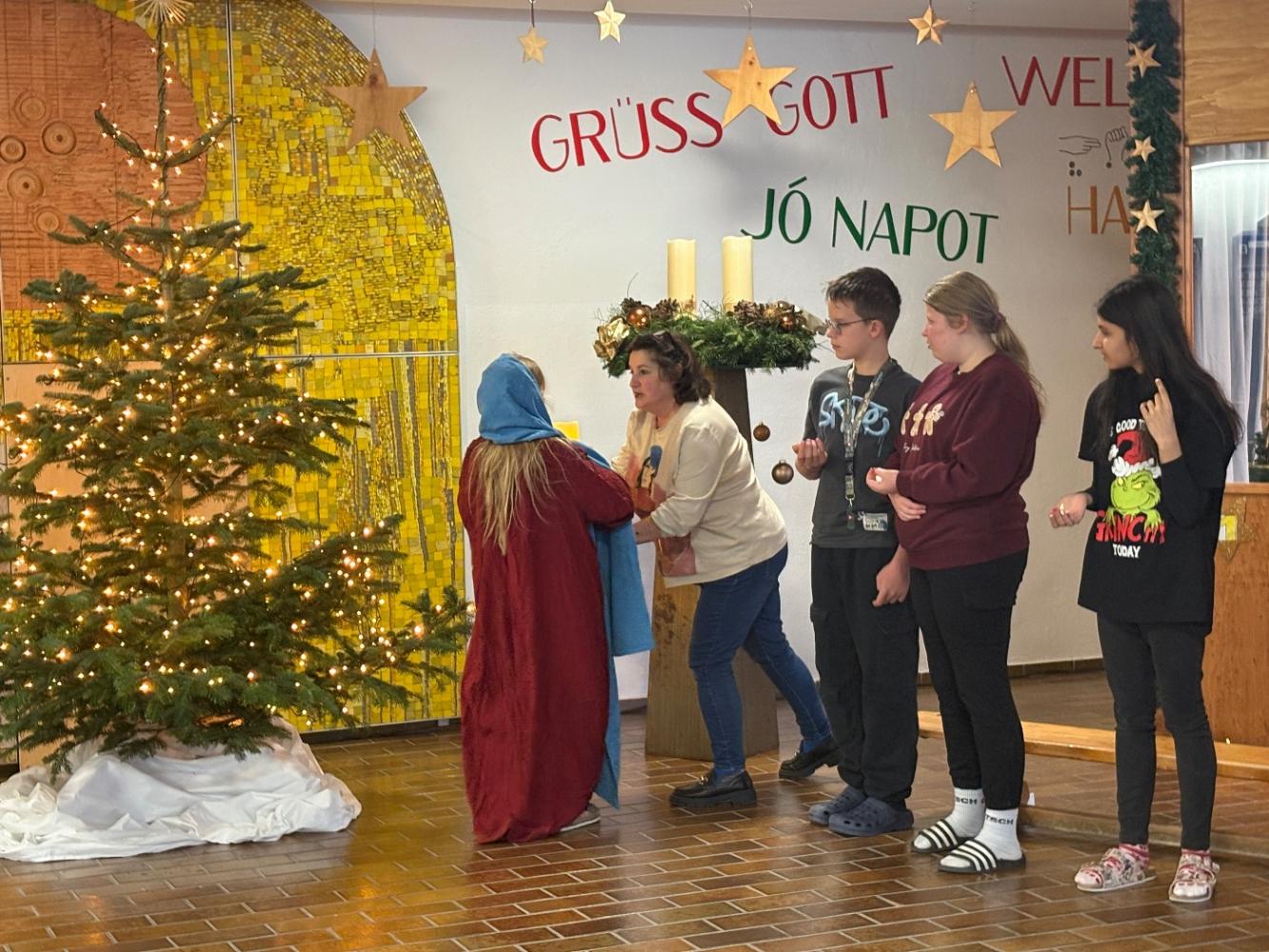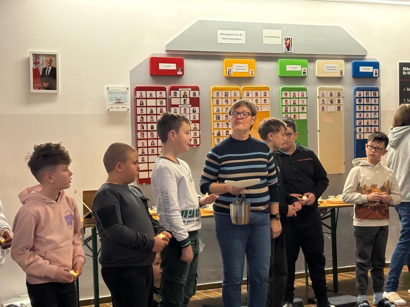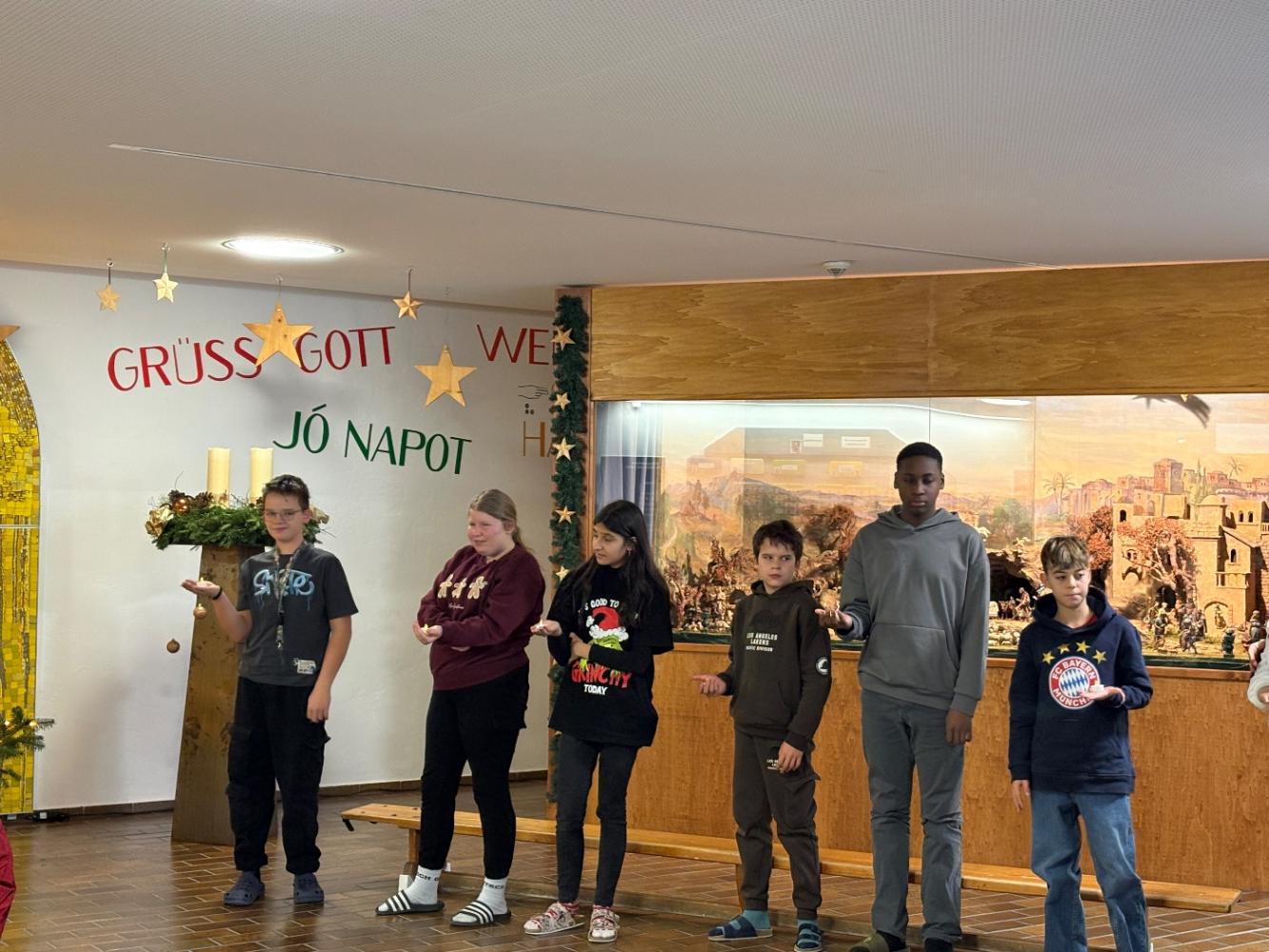 Mit einem stimmungsvollen Beisammensein, das unsere Reli-Lehrerinnen geplant hatten, feierten wir den Beginn der Adventzeit. Jede Klasse bekam einen Adventteller mit vier Kerzen, der uns ebenso wie die kommenden Adventimpulse in vorweihnachtliche Stimmung bringen soll. Am großen Adventkranz wurde die erste Kerze entzündet. Danke an alle, die die Adventkranzweihe vorbereitet und auch an all jene, die heute mitgefeiert haben!
