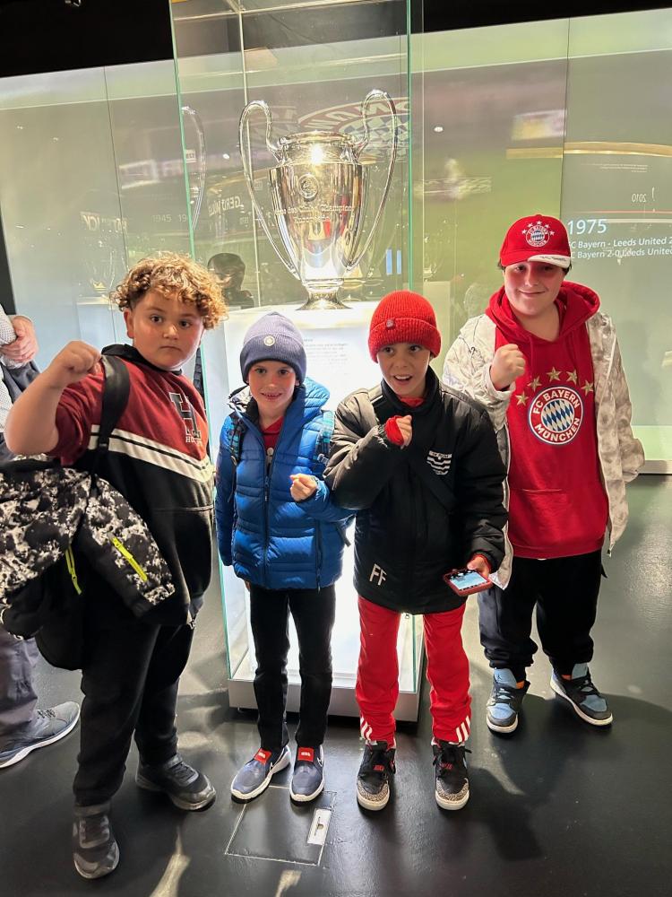 Dort wurden wir durch das riesige Stadion geführt und konnten sogar in die Spielerkabine des FC Bayern schauen. Anschließend besichtigten wir noch das FC Bayern Museum mit den zahlreichen Pokalen und Meisterschalen. Zum Schluss kauften noch einige Trikots und Fanartikel ein. Wir hatten einen außerordentlich schönen Tag beim FC Bayern München.