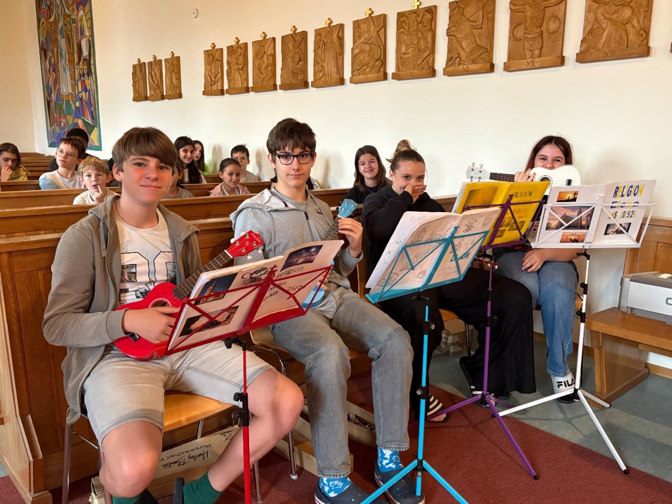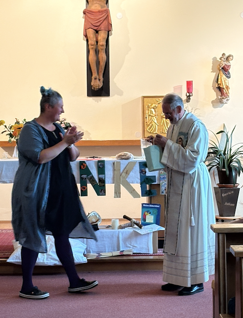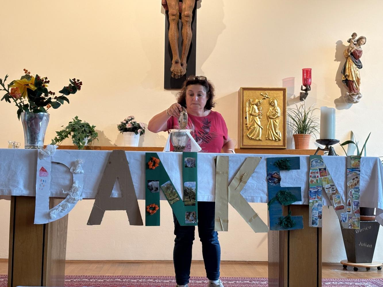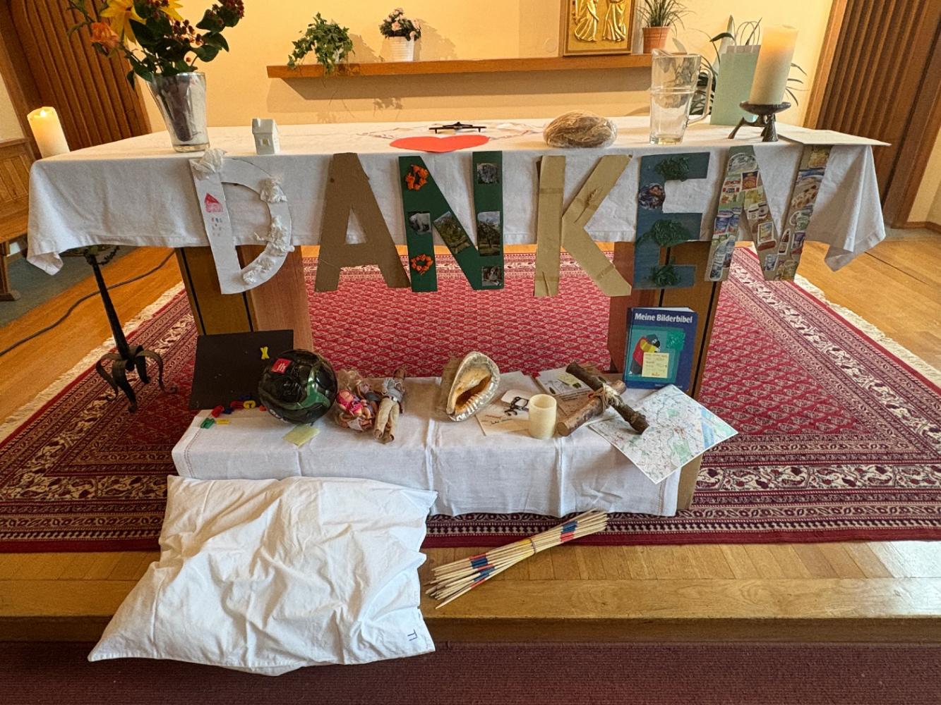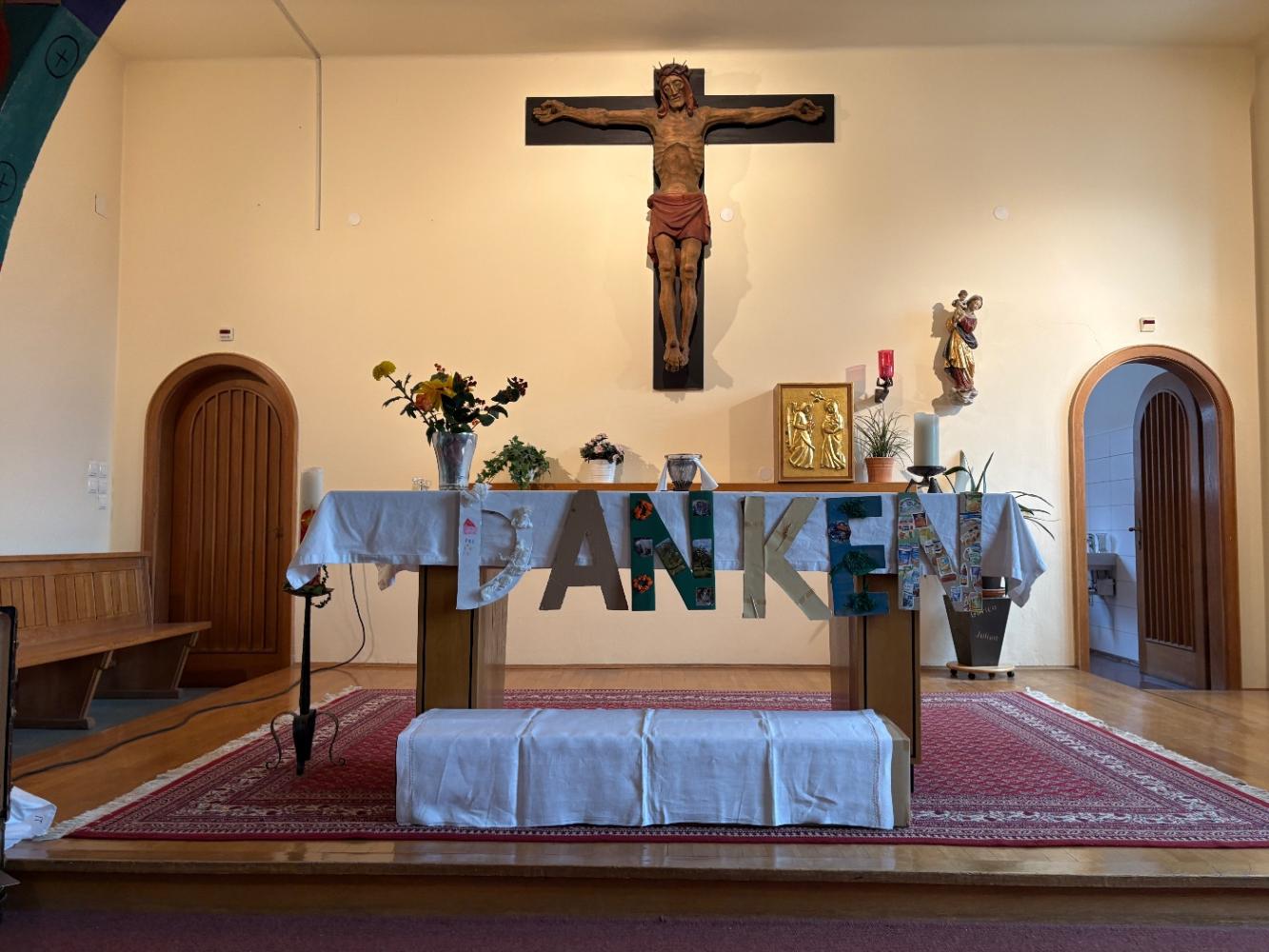 Pfarrer Martin Ferner feierte mit uns dieses Fest, das wie immer liebevoll vom Reli-Team vorbereitet worden war. Dass es genug Dinge im Leben gibt, für die wir DANKE sagen dürfen, zeigten uns die Beiträge der Kinder und Jugendlichen in der Schatzkiste. Auch wir bedanken uns nun ganz herzlich bei allen, die diesen Gottesdienst vorbereitet und gestaltet sowie musikalisch umrahmt und mitgefeiert haben: DANKE an alle!