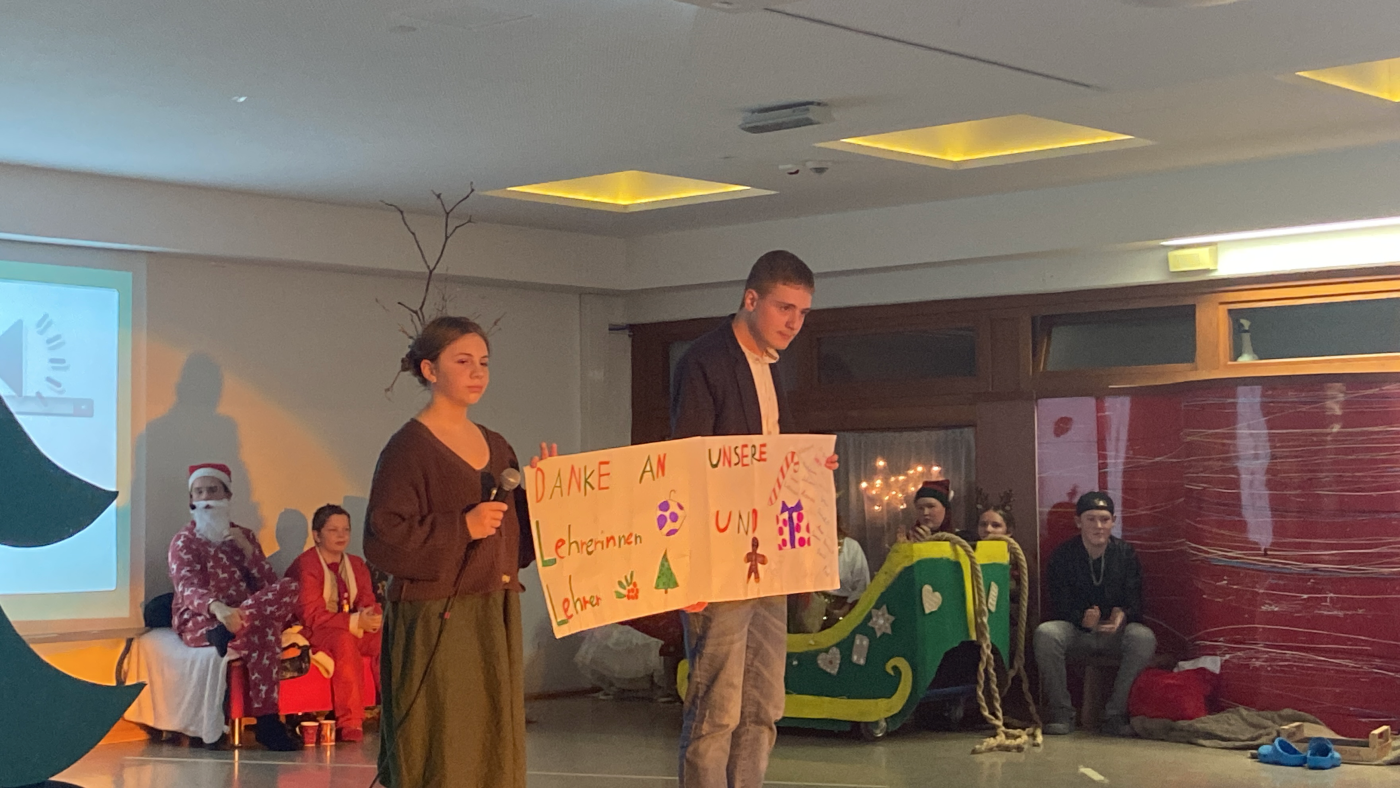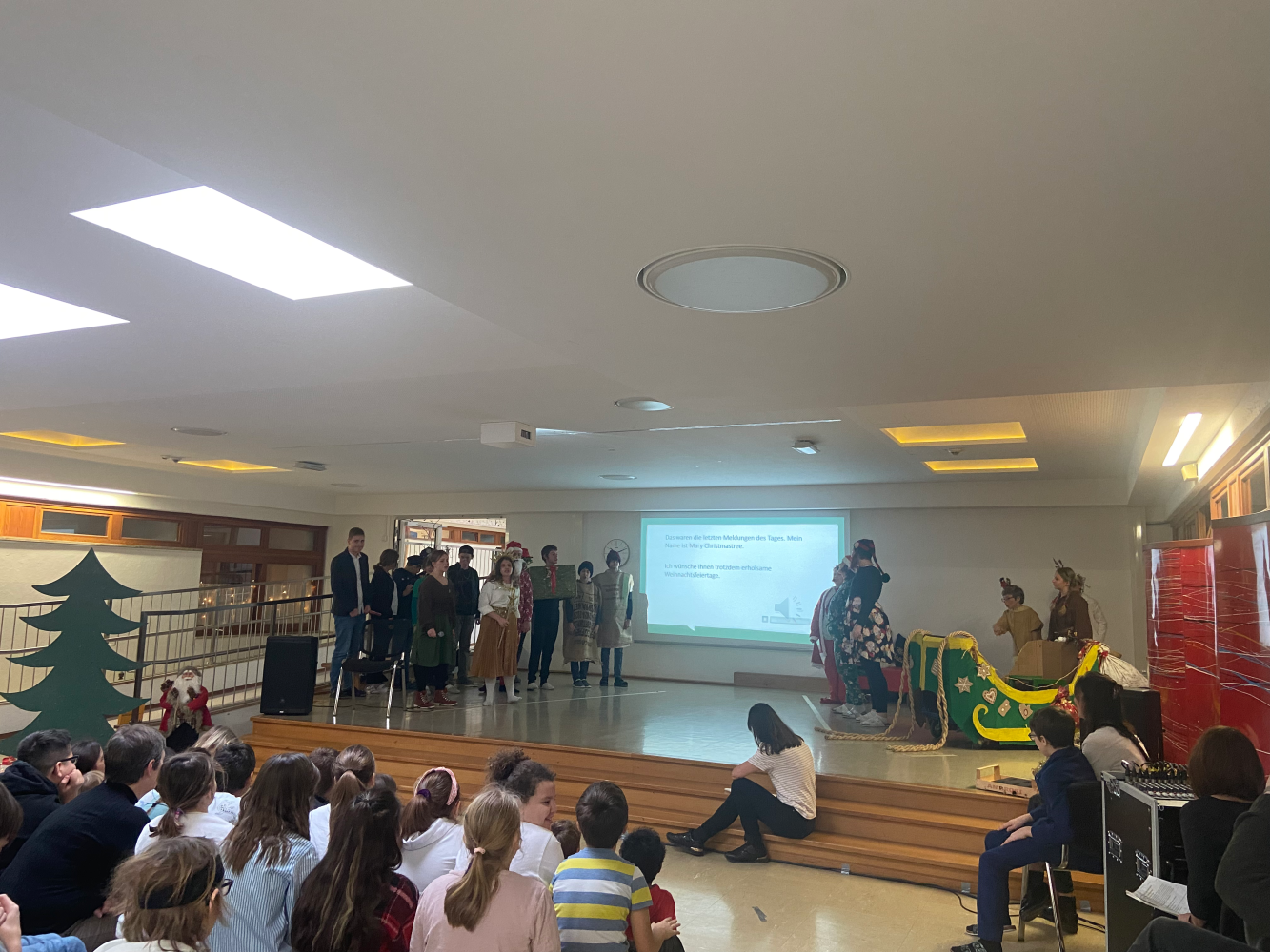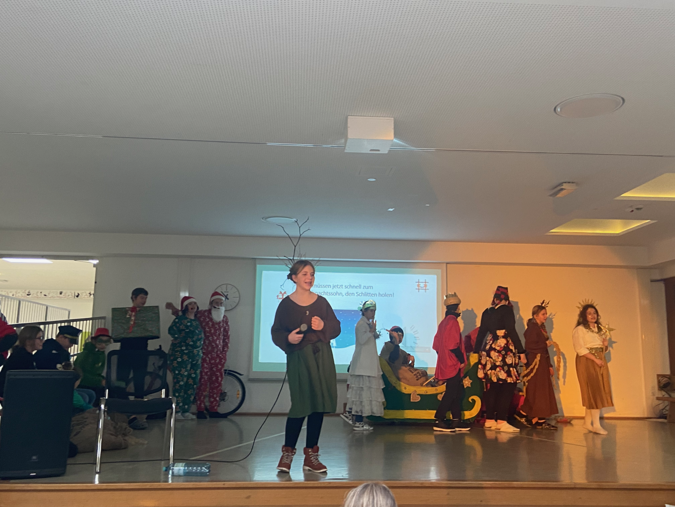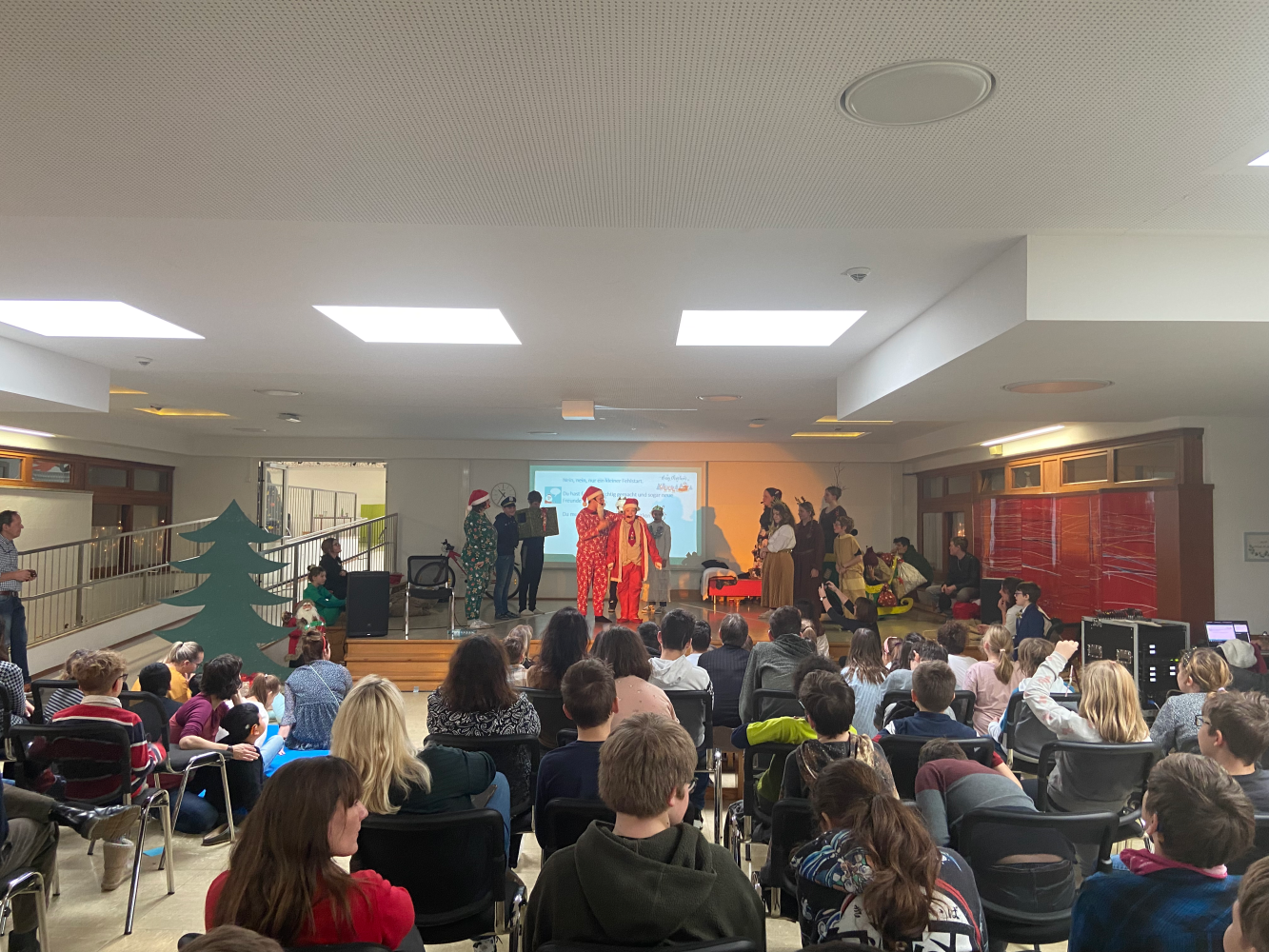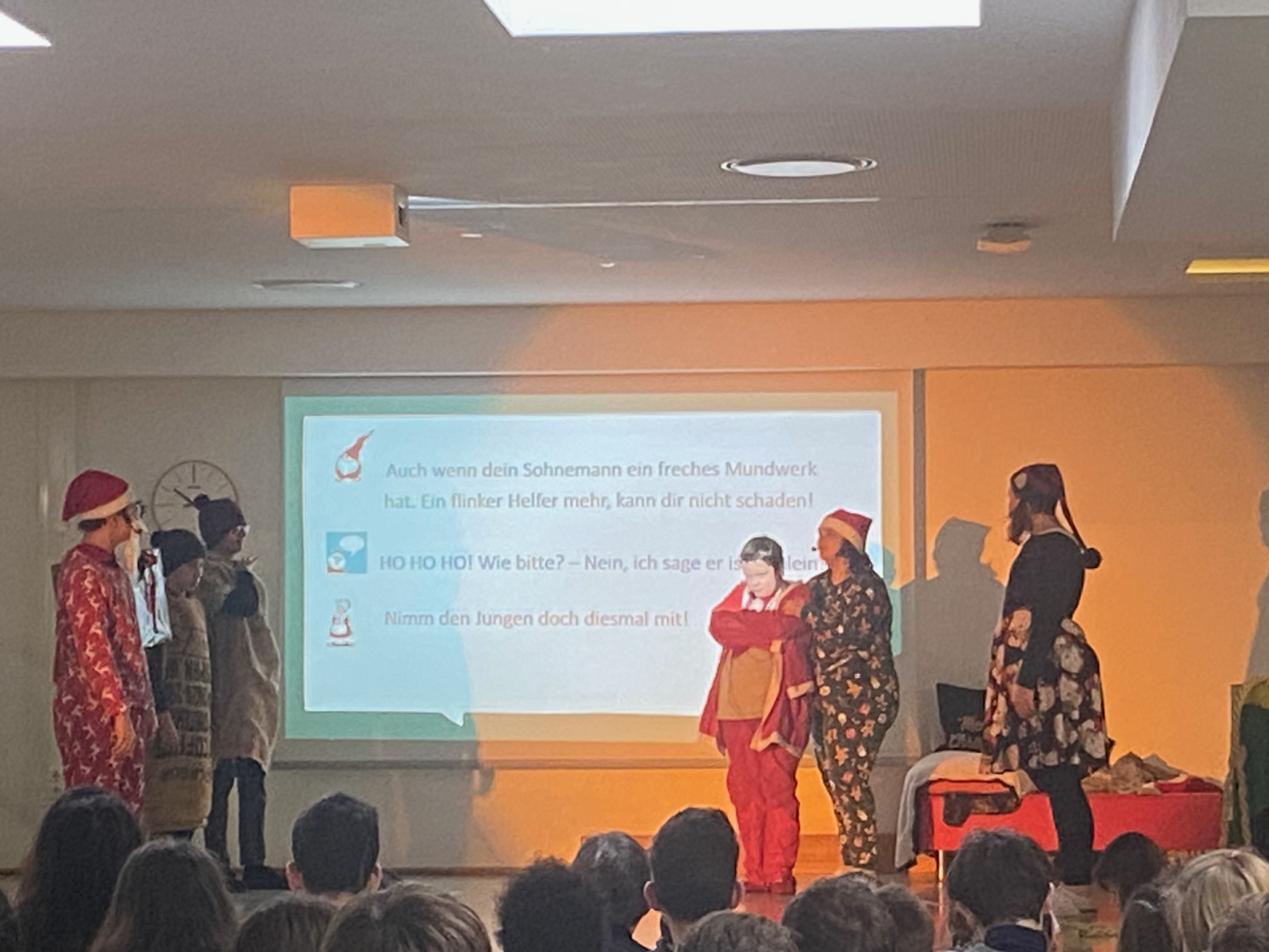 Unter der Leitung des Theater-Teams studierten die Schülerinnen und Schüler das Stück "Weihnachtsmann und Sohnemann" ein. Mit einem prächtigen Bühnenbild, tollen Licht- und Tontechnikern und musikalischen Einlagen begeisterten die Kids das Publikum und sorgten für einen guten Rutsch in die Ferien :-) Vielen Dank dafür!
