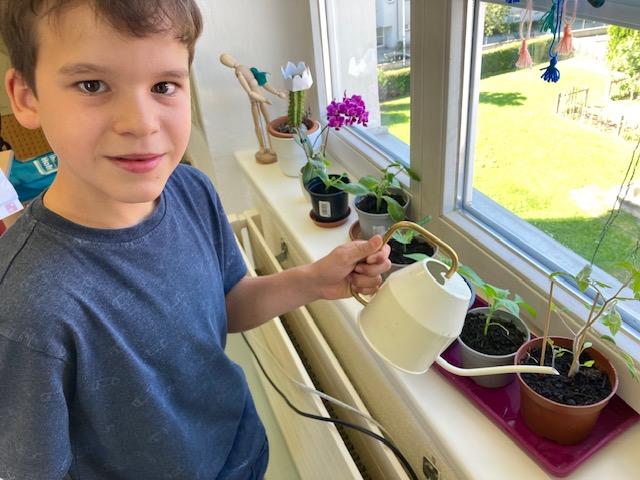 Nach einem halben Jahr erntet die 4.VSa den Humus, der sich unterhalb der grünen Kiste mit den Würmern gesammelt hat. Vermischt mit Erde haben die Schüler Samen ausgesät und Pflanzen heranwachsen lassen. Das Erste Kressebrot wurde schon verspeist. Mit ein wenig Glück haben wir im Herbst eine Kürbisernte.